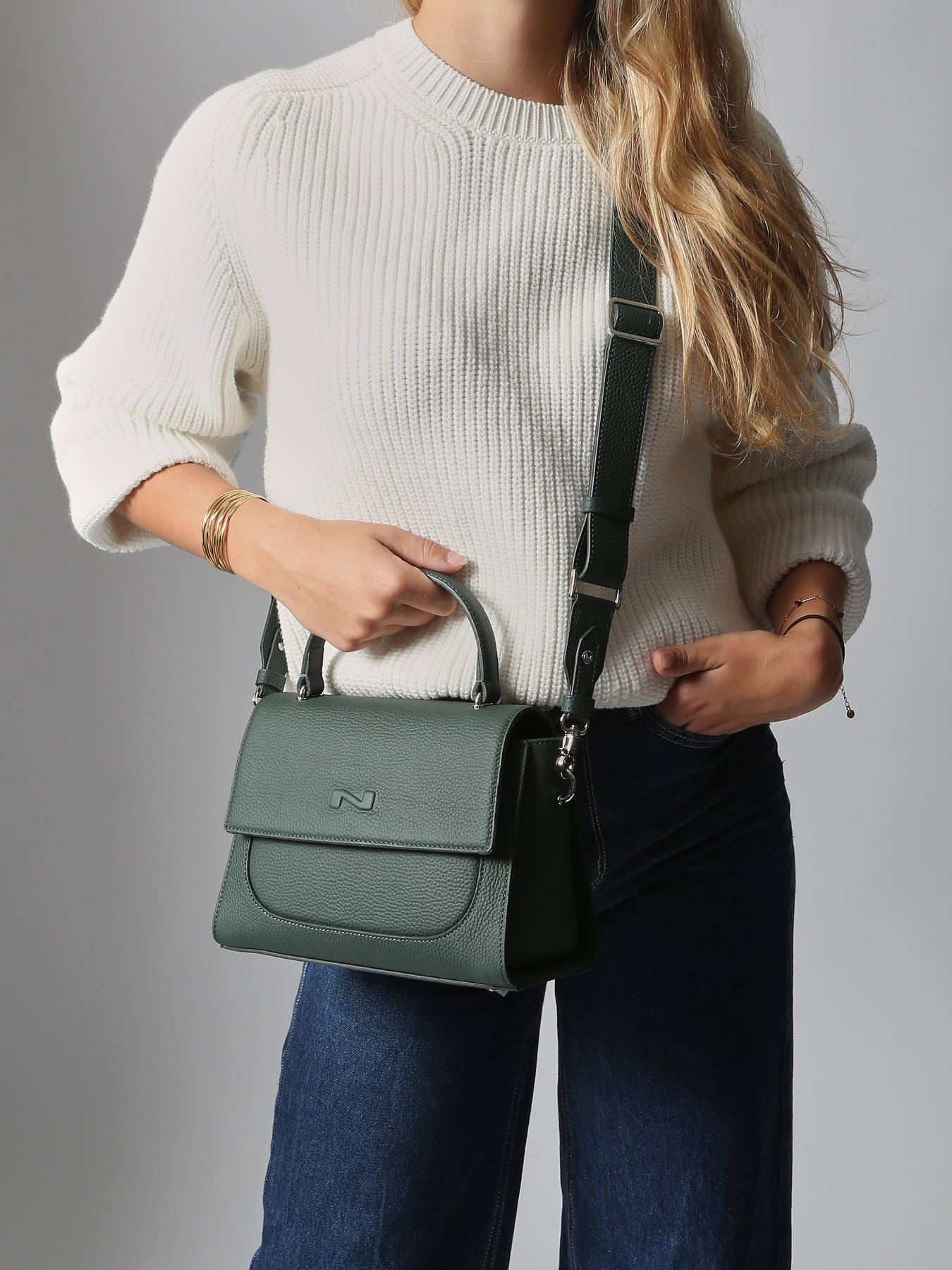 Le sac bandoulière Charlene de NATHAN BAUME incarne l’élégance moderne et la praticité au quotidien. Réalisé en cuir de vachette de haute qualité, il séduit par sa texture souple et résistante qui lui assure une allure sophistiquée et durable. Son rabat raffiné, fermé par un fermoir métallique discret, apporte une touche de chic intemporel, tandis que sa structure compacte reste idéale pour emporter vos essentiels avec style. Conçu pour s’adapter à toutes les envies, il est équipé d’une bandoulière réglable et amovible, permettant de le porter à l’épaule, en travers ou encore à la main grâce à sa petite anse de 9 cm. Fonctionnel, l’extérieur dispose d’une poche à l’avant et d’une poche au dos, parfaites pour garder vos indispensables à portée de main. L’intérieur, quant à lui, s’organise autour d’un compartiment principal, d’une poche simple et d’une poche zippée pour sécuriser vos effets. Mariage subtil de raffinement et de praticité, le Charlene est le compagnon idéal pour toutes les occasions.